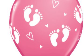 43418. Globo No. 11 Piesitos y Corazones Rosado Qualatex (25 uds)