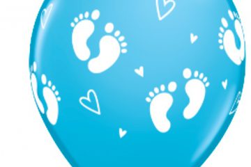 43419. Globo No. 11 Piesitos y Corazones Azules Qualatex (25 uds)